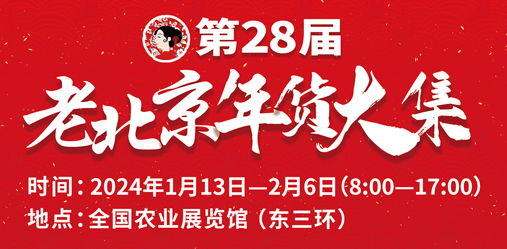 老北京年貨大集28周年 時間:2024年1月13日-2月6日 (共25天) 地點(diǎn):全國農(nóng)業(yè)展覽館 北京市朝陽區(qū)東三環(huán)北路16號